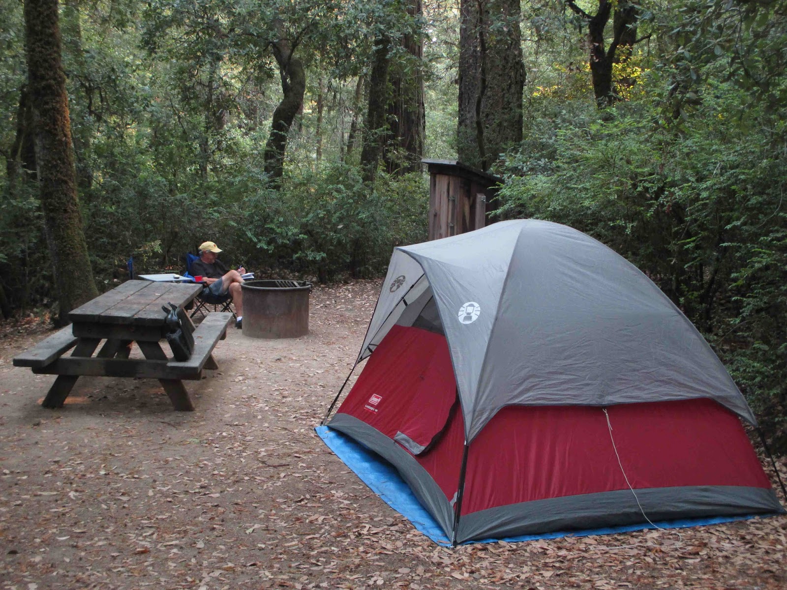 Campsite in the Humboldt Redwoods California State Park along the Avenue of the Giants scenic highway. |